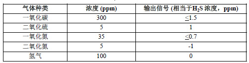 以4R H2S傳感器規(guī)格書為例:說明:當(dāng)300ppm的CO進(jìn)入傳感器時,信號電流小于1.5ppm H2S所對應(yīng)的電流當(dāng)5ppm進(jìn)入傳感器時信號電流相當(dāng)于1ppm H2S所對應(yīng)的電流。
