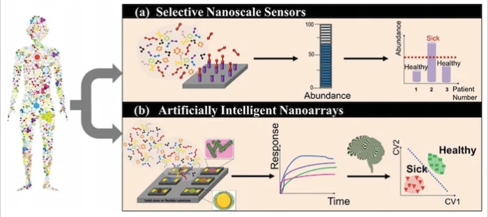 基于納米材料的復(fù)合傳感器陣列的基本工作原理。圖片由ACS Nano提供