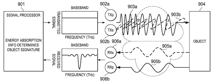 該專利的具體用途含糊不清,細(xì)節(jié)表明“發(fā)送/接收太赫茲EM波的電子設(shè)備正在變化,和/或在環(huán)境中反映太赫茲波的一個(gè)或多個(gè)物體的位置和/或方向正在移動(dòng)。 !