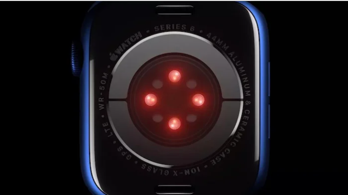 Apple Watch 6上的Apple血氧傳感器圖像。這是Apple過(guò)去創(chuàng)建的醫(yī)療專用傳感器的示例。圖片由Apple提供