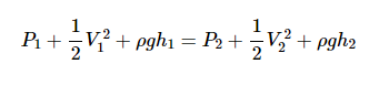 其中P是流體壓力,ρ是流體的密度,V表示流體速度,g是由于重力引起的加速度。帶下標(biāo)1和2的變量 分別對應(yīng)于橫截面1和2處的流體參數(shù)。