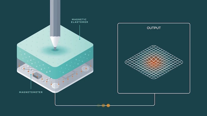 根據(jù)該出版物,當這種材料變形時,它會導致其磁場發(fā)生變化,附近的磁力計可以察覺到這種變化。然后,系統(tǒng)使用基于人工智能的技術將這些數(shù)據(jù)解釋為相關信息,例如接觸位置和施加的力。