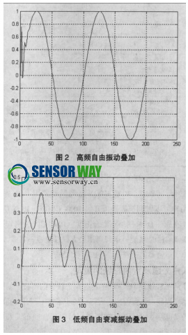 根據(jù)振動(dòng)時(shí)間歷程獲得的要求不同來選擇不同>的測(cè)量儀器。周期振動(dòng)、穩(wěn)態(tài)隨機(jī)振動(dòng)可根據(jù)被測(cè)頻率范圍、振動(dòng)幅值 大小來選擇儀器,而對(duì)于沖擊振動(dòng)(如爆破、火箭沖擊視速 度、張拉釋放等非穩(wěn)態(tài)振動(dòng)過程)選擇儀器時(shí)還應(yīng)注意考慮儀器的瞬態(tài)響應(yīng)影響。圖2為具有零頻特性的加速度計(jì)在受到?jīng)_ 擊正弦振動(dòng)時(shí)的反應(yīng)曲線,在被測(cè)信號(hào)上疊加有高頻衰減信號(hào),此為加速度計(jì)的自由振動(dòng)項(xiàng),用低通濾波可去掉其影響。 圖3為加速度計(jì)不是從零頻開始的記錄值。圖3中有一個(gè)低頻 衰!f過程,此為測(cè)量儀器的低頻下限引起的瞬態(tài)過渡過程,在數(shù)據(jù)處理時(shí)應(yīng)予以高通濾去除。