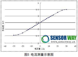 由圖5可以看出,在-20A-20A的范圍內(nèi),GMR傳感器電流測(cè)試單元具有較好的線性度,超過20A后,測(cè)試單元趨于飽和。