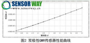 用于線性磁場測(cè)量的GMR傳感器應(yīng)具有良好的線性度,可測(cè)量正反兩個(gè)方向的磁場,因此,在測(cè)試芯片的選擇上可選擇雙極性的GMR傳感器直接進(jìn)行測(cè)試或選擇單極性的GMR傳感器對(duì)其進(jìn)行偏置處理,將其零點(diǎn)抬高。