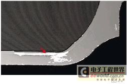 更為嚴(yán)重的是,這些未粘合區(qū)域幾乎形成一條從空腔內(nèi)部到達(dá)外部環(huán)境的連續(xù)通路。如果該器械在此條件下工作并且暴露于潮濕、污染、熱循環(huán)及沖擊和振動環(huán)境,則很可能形成連續(xù)通路,引起無法預(yù)料的故障。在可靠性較高的器械中,此界面上的任何未粘合狀況都是引起產(chǎn)品不合格的原因。在此故障類型不太重要的器械中,則可容許出現(xiàn)規(guī)定的小面積未粘合狀況。