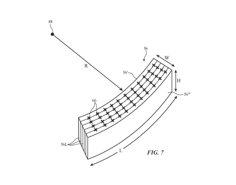 這是關(guān)鍵部分,這種光學(xué)傳感器可能會被布置并彎曲,以占用盡可能少的空間。蘋果公司說:“每個(gè)光控部件都可以由一疊層壓彎曲的光控膜形成! “用于堆疊的光控膜可以使用具有彎曲表面的層壓工具壓制成所需的彎曲形狀!