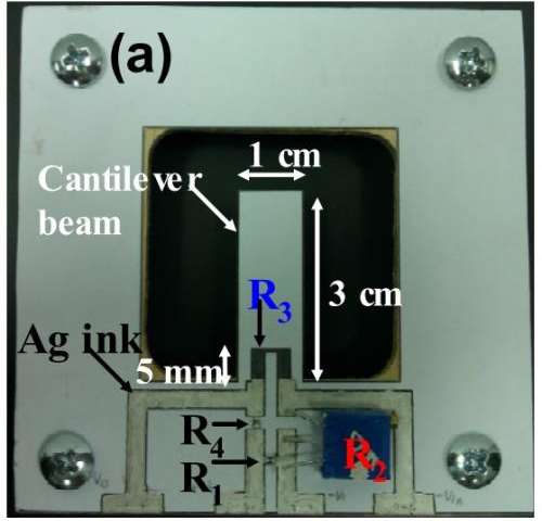 將傳感器畫在放在電子秤上的紙上,以便為每個(gè)鉛筆畫出的傳感器測(cè)量并保持一致的畫力。然后將圖紙粘貼在印刷電路板(PCB)板上,并在每個(gè)PCB板上安裝一個(gè)應(yīng)變儀。然后,Kang使用四點(diǎn)彎曲技術(shù)將應(yīng)力循環(huán)施加到傳感器上,并通過(guò)電路在施加的應(yīng)力下測(cè)量傳感器的電壓變化。