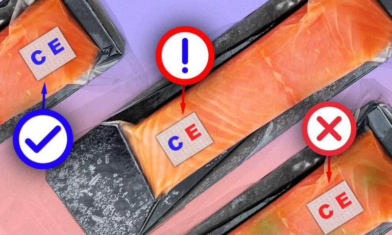 大約16小時后,研究小組觀察到,僅在被大腸桿菌污染的魚片中,“ E”從藍(lán)色變?yōu)榧t色,表明該傳感器可準(zhǔn)確檢測出細(xì)菌抗原。再過幾個小時后,所有樣品中的“ C”和“ E”都變成紅色,表明每個菲力都變質(zhì)了。