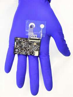 新的可穿戴設備由可粘貼到用戶皮膚上的粘貼片組成,其中包含刺激出汗的系統(tǒng)和旨在快速檢測出汗液中維生素C水平的電極傳感器。為此,該設備包括含有抗壞血酸氧化酶的柔性電極。當存在維生素C時,酶會將其轉(zhuǎn)化為脫氫抗壞血酸,所產(chǎn)生的氧氣消耗會產(chǎn)生由設備測量的電流。