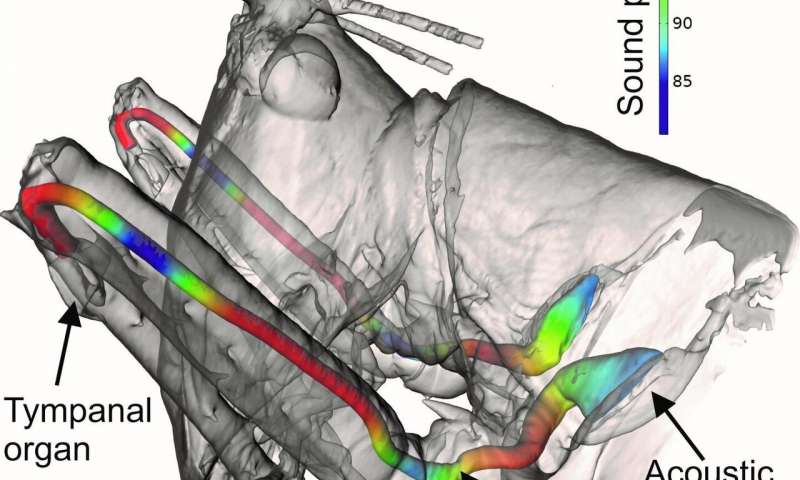 一個(gè)由感官生物學(xué)家和數(shù)學(xué)家組成的國際團(tuán)隊(duì)發(fā)現(xiàn),昆蟲的喇叭形外耳(稱為氣管導(dǎo)管)通過放大和轉(zhuǎn)換壓力波來捕獲與哺乳動物耳道相同的聲音,然后將其傳遞給鼓膜表面為動物提供定向聽覺。