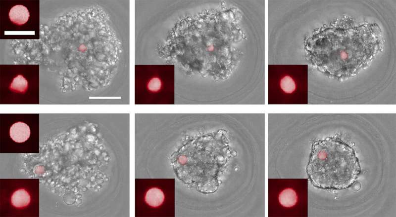 這些球是由一種叫做聚丙烯酰胺的聚合物制成的。達(dá)林說(shuō),球體對(duì)新形成的組織的行為沒(méi)有明顯影響,聚丙烯酰胺材料具有高度一致和可調(diào)節(jié)的機(jī)械性能,這使得使球體足夠柔軟以至于在受到細(xì)胞力的作用下可測(cè)量地變形是可能的。