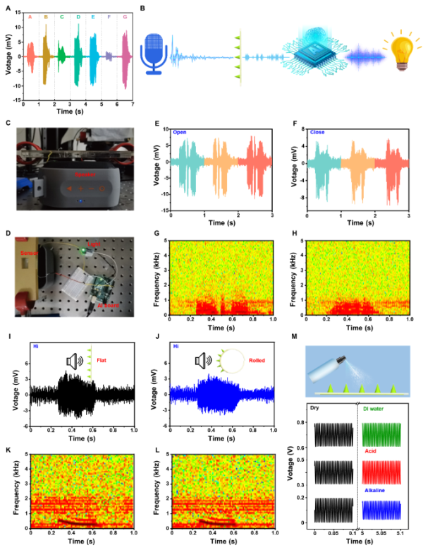 圖1 微錐陣列柔性壓電聲敏器件應(yīng)用演示圖