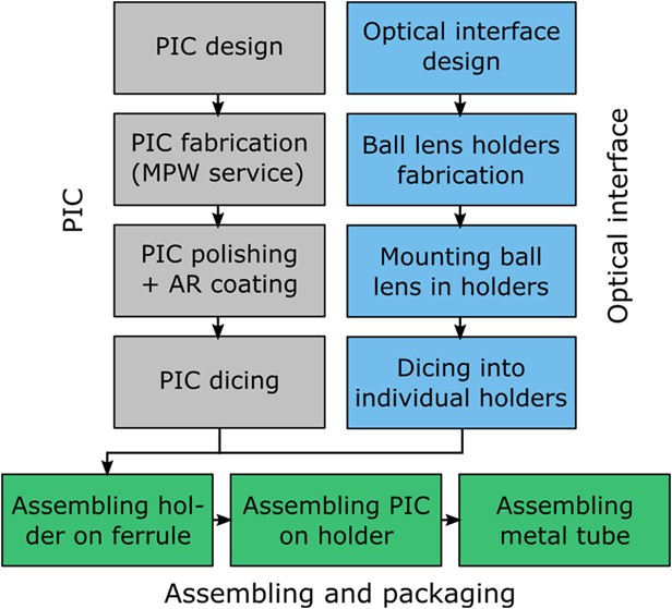 研究人員從硅波導中具有布拉格光柵傳感器的光子集成電路裸芯片開始,詳細介紹了獲得完整封裝的微型光子溫度傳感器的過程。