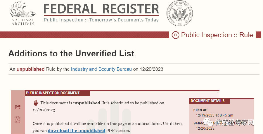 今日(12月20日),美國商務部又將13家中國實體列入“未經(jīng)核實清單”(UVL清單),本次被“拉黑”的實體大部分為電子類企業(yè),值得一提的是包含了一家國產(chǎn)傳感器公司。