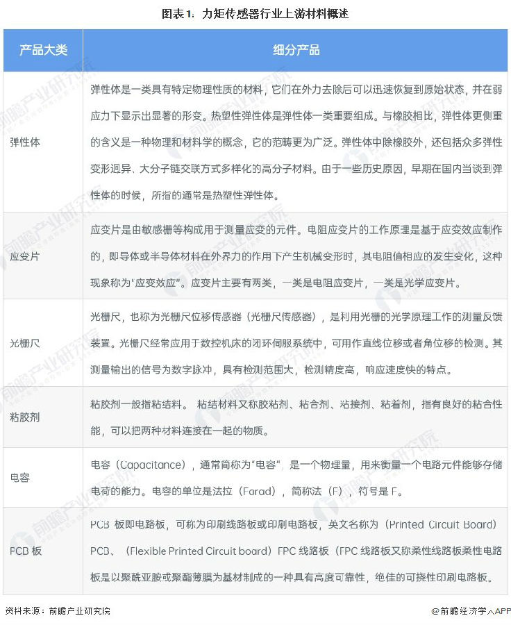 力矩傳感器主要上游材料有彈性體、應(yīng)變片、光柵尺、粘膠劑電容和PCB板。彈性體是力矩傳感器中的一個關(guān)鍵部件,它起到連接傳感器外殼和測量物體的作用。力矩傳感器彈性體不僅需要具有良好的彈性,能夠抵抗振動和沖擊,同時還需要能夠在物體和傳感器之間產(chǎn)生足夠的力以保證測量的準確性。