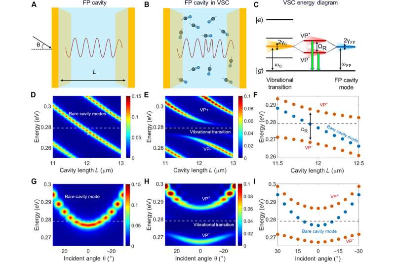 該團(tuán)隊(duì)使用高反射率金鏡構(gòu)建光學(xué)腔,這種光學(xué)腔能捕獲光線并使其來(lái)回 “反射”,大幅增強(qiáng)光線與腔內(nèi)分子的相互作用。被限制的光場(chǎng)與分子振動(dòng)會(huì)緊密交織,形成全新的量子態(tài),即 “振動(dòng)極化激元”(vibro-polaritons)。