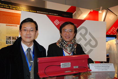 由香港理工大學(xué)研發(fā)的“精密鐵路監(jiān)測(cè)系統(tǒng)” 是全球首套智能鐵路監(jiān)測(cè)網(wǎng)絡(luò),是利用先進(jìn)光纖光柵傳感器,把機(jī)械應(yīng)變轉(zhuǎn)換成反射光波長(zhǎng)的變化。通過(guò)監(jiān)測(cè)光波長(zhǎng)的變動(dòng),可對(duì)機(jī)械應(yīng)變進(jìn)行測(cè)量,技術(shù)能應(yīng)用于機(jī)械和土木工程項(xiàng)目如車輛、橋梁、高樓、水堤等,監(jiān)測(cè)其結(jié)構(gòu)的變動(dòng)情況,讓管理單位能及早進(jìn)行維修、檢視工作。2004年,“光纖光柵鐵路監(jiān)測(cè)系統(tǒng)”在瑞士日內(nèi)瓦舉行的第三十二屆國(guó)際發(fā)明及創(chuàng)新技術(shù)與產(chǎn)品展覽中榮獲金獎(jiǎng), 而在2009年亦獲得中國(guó)國(guó)際工業(yè)博覽會(huì)的金獎(jiǎng)。