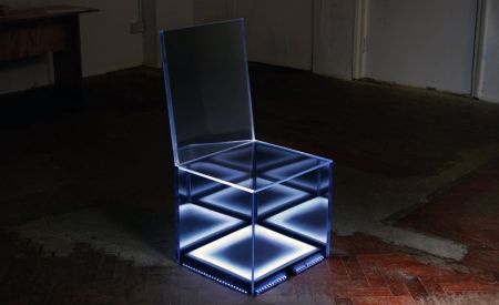 這把被設計師賦予了“隱身”功能的座椅將于2月份在英國皇家藝術(shù)學院展出,它向人們展示了一種依附于意識形態(tài)的設計理念。椅子的“隱身”功能依靠貼有單向鏡膜的鏡面有機玻璃實現(xiàn),這些有機玻璃可以有效地反射出周圍環(huán)境,讓椅子看上去如同懸空一樣。除此之外,設計者還在座椅內(nèi)部加裝了超聲傳感器與LED照明燈,當傳感器探測到有人靠近時,便向LED燈發(fā)出脈沖信號,燈便會如心跳般閃爍,與此同時,座椅下表面會逐漸變透明,邊緣也會泛起藍光。當傳感器“確認”有人要上座時,LED燈才會停止閃爍。高科技的支持和新穎的設計讓這款座椅極具夢幻效果,十分吸引人。