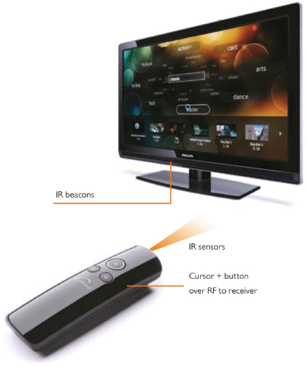 菲利浦的uWand是競(jìng)爭(zhēng)技術(shù)之一。菲利浦的手持式控制器選用集成式紅外攝像頭檢測(cè)電視機(jī)發(fā)出的紅外光,不需要陀螺儀就能實(shí)現(xiàn)精確的運(yùn)動(dòng)跟蹤。但大多數(shù)其它IPTV遙控器使用的是MEMS陀螺儀。