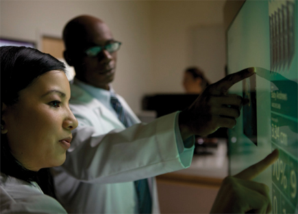 關(guān)鍵是微軟公司與三星LCD部門(mén)(該公司最終出廠(chǎng)銷(xiāo)售的顯示屏型號(hào)是SUR40)聯(lián)合開(kāi)發(fā)的PixelSense技術(shù)。針對(duì)交替式棋盤(pán)形圖案的可見(jiàn)光或紅外光,PixelSense技術(shù)在每個(gè)LCD像素點(diǎn)增加了一個(gè)光傳感器。背光中的可見(jiàn)光和紅外光發(fā)射器允許每個(gè)對(duì)應(yīng)像素檢測(cè)從用戶(hù)雙手或其它物體反射的光線(xiàn)。通過(guò)60幀/秒的速度采樣傳感器,該技術(shù)可以同時(shí)跟蹤多個(gè)用戶(hù)的運(yùn)動(dòng),用戶(hù)數(shù)量?jī)H受屏幕可用表面積的限制。內(nèi)置FPGA支持位置跟蹤,并能讀取在屏幕表面上放置的物體上的特殊應(yīng)用標(biāo)簽,并通過(guò)紅外傳輸方式將數(shù)據(jù)發(fā)送到帶攝像頭的Windows 7智能手機(jī)上。