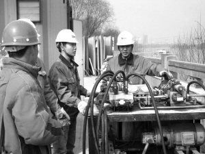 蘭州中山橋維修加固工程于去年11月中旬啟動,并按照“修舊如舊”的原則,進(jìn)行保護(hù)性的維修加固,全面提升中山橋的防汛、抗震能力,確保文物的安全。施工單位表示,中山橋的維修加固將嚴(yán)格按照ISO9001標(biāo)準(zhǔn)執(zhí)行,遵照項(xiàng)目部的質(zhì)量方針:技術(shù)先進(jìn)、管理科學(xué)、精心組織,信守合同,確保工程質(zhì)量達(dá)到設(shè)施及規(guī)范標(biāo)準(zhǔn)。據(jù)悉,中山橋?yàn)?跨簡支鋼桁架橋,橋梁全長233.5米,總寬9.55米,原結(jié)構(gòu)為平行弦桿桁架體系,1954年增設(shè)了拱式桁架。記者在中山橋施工現(xiàn)場看到,中山橋橋墩四面都被鋼板圍了起來,橋墩加固已完成。現(xiàn)場的工作者們正為中山橋順利抬升,做著最后的準(zhǔn)備工作。從遠(yuǎn)處望去,中山橋的橋身被籠罩在橘色的光環(huán)下,現(xiàn)場的工作人員告訴記者,這些被染成橘色的設(shè)備主要是用來承載“千斤頂”的。記者觀察到,每個(gè)橋墩兩側(cè)都設(shè)置了一個(gè)“千斤頂”,共計(jì)12個(gè),屆時(shí)安裝完畢的6組共12個(gè)300噸級的“千斤頂”將擔(dān)負(fù)起對重達(dá)1000噸的百年鐵橋——中山橋的抬升任務(wù)。除了12個(gè)300噸級的“千斤頂”外,記者看到現(xiàn)場還鋪設(shè)了許多電線,據(jù)悉在中山橋整體抬升過程中,主要是以電腦為主,人工協(xié)助,而通過電腦系統(tǒng)控制橋面抬高在蘭州橋梁施工中是首次,F(xiàn)場工作人員告訴記者,雖然此技術(shù)在蘭州橋梁施工中是首次,但是該技術(shù)成熟,施工方在此方面具有豐富的經(jīng)驗(yàn)。