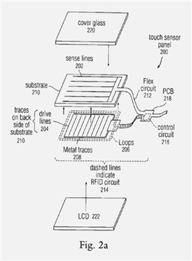 據(jù)了解,這是一個(gè)可以位于觸控屏幕上的RFID標(biāo)簽讀取器,可以與觸摸傳感器電路板上的RFID電路結(jié)合,共用的金屬天線(xiàn)可以使設(shè)備不通過(guò)接觸就可以實(shí)現(xiàn)RFID應(yīng)答。