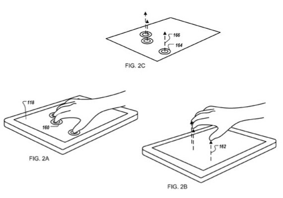 這項(xiàng)專利涉及兩個(gè)較為晦澀的概念。第一個(gè)概念涉及利用近距離傳感器和觸摸屏以3D形式記錄手勢(shì)。比如,用戶用三根手指在觸摸屏上擺出三角形狀,然后“縮放”形成金字塔造型,以用于CAD應(yīng)用。