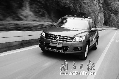 國產(chǎn)途觀的前臉一改進口版本的U型嘴設計,運用了大眾汽車最新的橫向擴展設計理念,寬大的黑色鋼琴漆水箱格柵配合兩條電鍍亮條,與熏黑燈腔的鷹眼燈在水平方向上緊密連接,連成一體,構成了深邃剛毅的前臉特征。保險杠變得更為強壯有力,沿霧燈眉稍處的臺階狀型面設計,較之進口版的保險杠更為前凸,使得整個前臉更加棱角分明,大有咄咄逼人之勢。