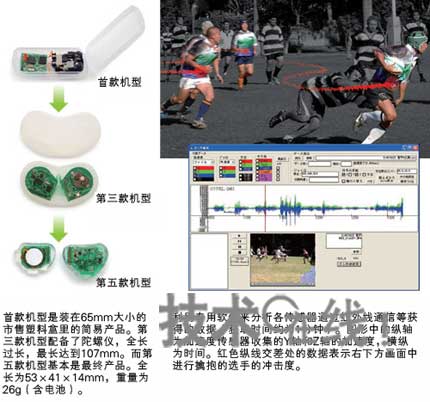 之后,只需通過(guò)紅外線通信等提取所記錄的數(shù)據(jù),通過(guò)專用電腦進(jìn)行分析即可。這樣,橄欖球選手在比賽中的狀態(tài)就會(huì)“曝露無(wú)余”。