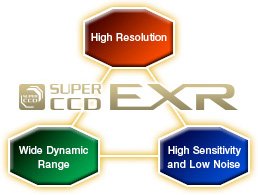 富士數(shù)碼相機(jī)的研發(fā)人員找到了一個(gè)兩全其美的排列方法。他們摒棄了傳統(tǒng)的矩陣形排列,自行研發(fā)開(kāi)創(chuàng)了另一種CCD的陣列,即:光敏元件八角型蜂窩狀排列,這種陣列不僅將傳統(tǒng)的像素橫向排列變?yōu)樾毕蚺帕,還將相同顏色的像素對(duì)排列在一起。既增加了單位面積內(nèi)像素?cái)?shù)量,又保證了相機(jī)的高感光度。富士數(shù)碼相機(jī)從此進(jìn)入了Super CCD EXR時(shí)代。