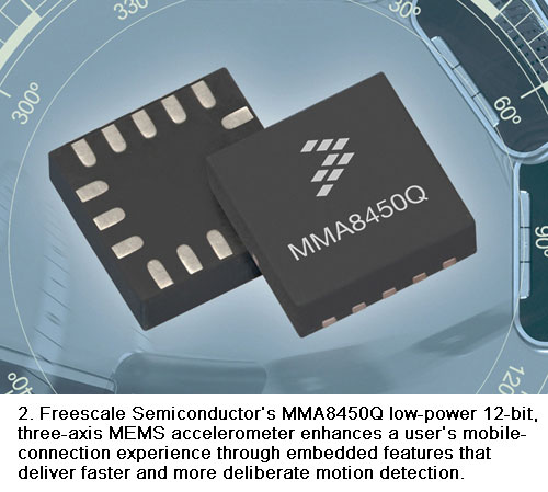 圖2:MMA8450Q低功耗12位三軸MEMS加速度計可改善消費者的移動連接體驗。