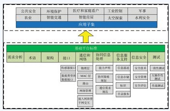 我們認(rèn)為,傳感器網(wǎng)絡(luò)標(biāo)準(zhǔn)體系應(yīng)當(dāng)包括基礎(chǔ)平臺(tái)標(biāo)準(zhǔn)與應(yīng)用子集標(biāo)準(zhǔn)。基礎(chǔ)平臺(tái)標(biāo)準(zhǔn)指通過(guò)對(duì)傳感器網(wǎng)絡(luò)各類(lèi)應(yīng)用的共性特征和技術(shù)要求進(jìn)行分類(lèi)、規(guī)范,形成若干標(biāo)準(zhǔn)化的功能模塊組合;應(yīng)用子集標(biāo)準(zhǔn)指根據(jù)各傳感器網(wǎng)絡(luò)應(yīng)用的特點(diǎn),描述為特定應(yīng)用要求,如網(wǎng)絡(luò)規(guī)模、組網(wǎng)形式、服務(wù)質(zhì)量要求、系統(tǒng)生存時(shí)間、覆蓋范圍、業(yè)務(wù)種類(lèi)等;根據(jù)具體應(yīng)用案例,將基礎(chǔ)平臺(tái)標(biāo)準(zhǔn)和應(yīng)用子集標(biāo)準(zhǔn)中的不同模塊組合,形成最終的傳感器網(wǎng)絡(luò)應(yīng)用系統(tǒng)。
