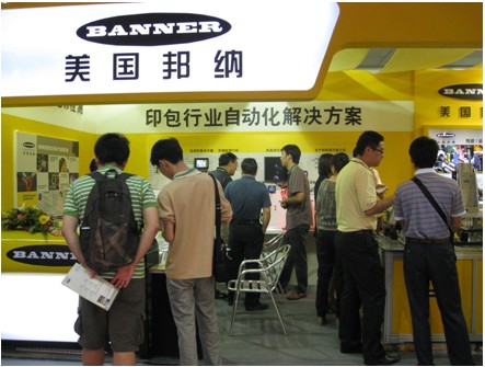 達(dá)到穿過透明/半透明容器,獨特調(diào)制的紅外光對水有極高靈敏度,用于檢測液位高低;體積小巧,外殼堅固的報警指示燈K50,LED燈光柔和明亮;用于瓶蓋和液位檢測P4視覺相機(jī),其性價比高,具有眾多視覺工具選擇和人性化編程界面;另外還有TCNM系列高性能條碼閱讀器,結(jié)構(gòu)緊湊,性能可靠,讀碼能力超強(qiáng),可連接觸摸屏和報警燈;響應(yīng)速度快經(jīng)濟(jì)型R58A色標(biāo)傳感器等等,特別值得一提的是邦納本次展會帶來了2010年最新推出的SHP一體化觸摸控制器,內(nèi)置PLC和網(wǎng)絡(luò)功能,集成度更高,操作更簡單。以上種種產(chǎn)品顯示出邦納在印刷包裝行業(yè)檢測應(yīng)用產(chǎn)品豐富,應(yīng)用范圍廣泛,技術(shù)多樣型,不僅如此,在邦納公司技術(shù)人員的專業(yè)講解下,更是吸引了眾多觀眾駐足。