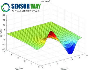 要開發(fā)傳感器系統(tǒng),首先必須對(duì)預(yù)期的磁輸入信號(hào)有一個(gè)總體了解。首先要了解編碼器輪和傳感器頭上永磁體的標(biāo)準(zhǔn)規(guī)格,以及預(yù)期尺寸和公差。通過(guò) ANSYS 方法進(jìn)行 FEM 仿真可確定磁場(chǎng)。這里就有對(duì)編碼器輪、傳感器元件和磁體進(jìn)行建模的問(wèn)題(圖 5)。然后便可根據(jù)傳感器元件和編碼器輪之間的距離,確定與之呈函數(shù)關(guān)系的磁場(chǎng)強(qiáng)度。圖 6 是傳感器橋上的磁輸入信號(hào)與距離呈函數(shù)關(guān)系的三維圖示。很容易看出輸入信號(hào)呈正弦曲線,信號(hào)振幅隨距離增加而明顯減小。除了距離之外,位置偏離也會(huì)導(dǎo)致振幅減小。例如,如果傳感器頭不在編碼器輪前面的中心位置,那么信號(hào)振幅也會(huì)減小。根據(jù) FEM仿真方法,這樣也可將機(jī)械規(guī)范轉(zhuǎn)化成預(yù)期磁變量。與氣隙變化不同,傾斜會(huì)導(dǎo)致偏移,這同樣會(huì)影響系統(tǒng)的正常運(yùn)轉(zhuǎn)。FEM 仿真也可以預(yù)估其造成的影響(圖 7),而且結(jié)果可直接轉(zhuǎn)化為可容許的位置公差。
