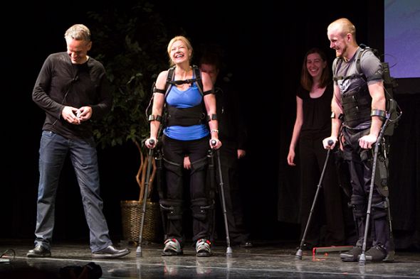在近日舉行的一場(chǎng)發(fā)布會(huì)上,癱瘓已18年的截癱患者阿曼達(dá)-博克斯特爾演示了“eLEGS”外骨骼系統(tǒng)的使用方法。博克斯特爾表示,“每走一步,我的信心就增強(qiáng)一倍。這是一種真正的解放。我常年坐在輪椅上,感覺處處低人一頭,F(xiàn)在,我可以看到整個(gè)世界!