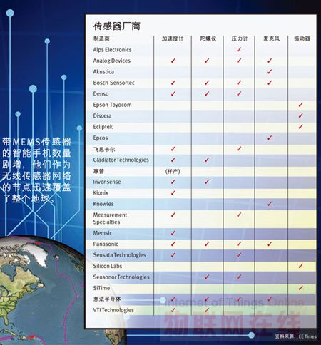 移動(dòng)手機(jī)中的MEMS傳感器不僅能讓用戶對(duì)應(yīng)用軟件著迷,而且今后還能用來監(jiān)視星球脈沖信號(hào)!坝捎谝苿(dòng)手機(jī)中使用了MEMS傳感器,使得我們?nèi)缃衲芤愿痈咝У姆绞脚c世界發(fā)生交互,而不僅只是讓人感到驚嘆!盡EMS Industry Group(MIG)公司管理總監(jiān)Karen Lightman表示,“在整個(gè)世界范圍內(nèi),MEMS傳感器正在不斷提高使用這些傳感器的人們的生活質(zhì)量!