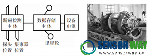 圖1管道內(nèi)檢測(cè)器系統(tǒng)結(jié)構(gòu)圖與實(shí)物圖