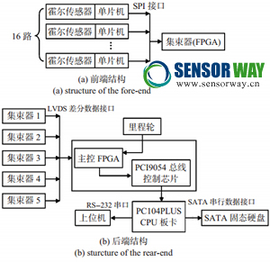本文針對(duì)這些問(wèn)題,采用多級(jí)的現(xiàn)場(chǎng)可編程門陣列(FPGA),利用其高速的并行處理能力,靈活可變的現(xiàn)場(chǎng)可 編程能力以及豐富的IP核資源,實(shí)現(xiàn)400只霍爾型傳感器同時(shí)采集數(shù)據(jù)并及時(shí)存儲(chǔ),滿足了高精度管道內(nèi)漏磁檢測(cè)器的所需精度要求。