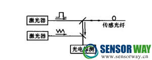 3、在電力系統(tǒng)光纜監(jiān)測中的應(yīng)用電力系統(tǒng)光纜種類繁多,加之我國地域廣闊,各地環(huán)境差異很大,所以光纜的環(huán)境也很復(fù)雜,其中溫度和應(yīng)力是影響光纜性能的主要環(huán)境因素。因此,在監(jiān)測光纖斷點的同時也對光纜所處溫度和應(yīng)力情況進(jìn)行監(jiān)測,可見對光纜的故障預(yù)警及維護(hù)意義深遠(yuǎn)。通過測量沿光纖長度方向的布里淵散射光的頻移和強度,可得到光纖的溫度和應(yīng)變信息,且傳感距離較遠(yuǎn),所以有深遠(yuǎn)的工程研究價值。基于布里淵光時域反射(BOTDR)的分布式光纖傳感系統(tǒng),采用相干檢測技術(shù),系統(tǒng)原理如圖1所示。
