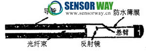 1、壓力測量。目前臨床上應(yīng)用的壓力傳感器主要用來測量血管內(nèi)的血壓、顱內(nèi)壓、心內(nèi)壓、膀胱和尿道壓力等。用來測量血壓的壓力傳感器示意見圖1。其中對壓力敏感的部分是在探針導(dǎo)管末端側(cè)壁上的一塊防水薄膜,一面帶有懸臂的微型反射鏡與薄膜相連,反射鏡對面是一束光纖,用來傳遞入射光到反射鏡,同時也將反射光傳送出來。當(dāng)薄膜上有壓力作用時。薄膜發(fā)生形變且能帶動懸臂使反射鏡角度發(fā)生改變,從光纖傳來的光束照射到反光鏡上,再反射到光纖的端點。由于反射光的方向隨反射鏡角度的變化而改變,因此光纖接收到的反射光的強度也隨之變化。這一變化通過光纖傳到另一端的光電探測器變成電信號,這樣通過電壓的變化便可知探針處的壓力大小。